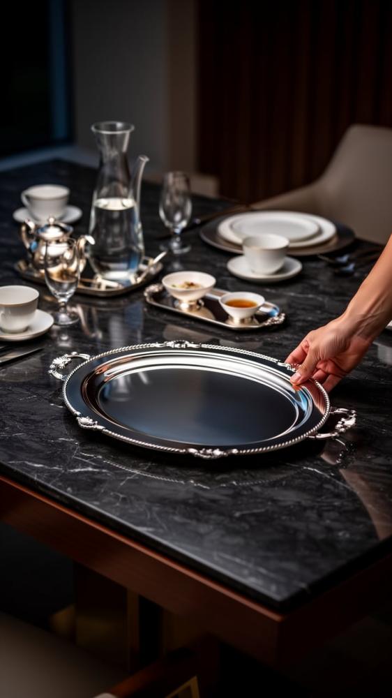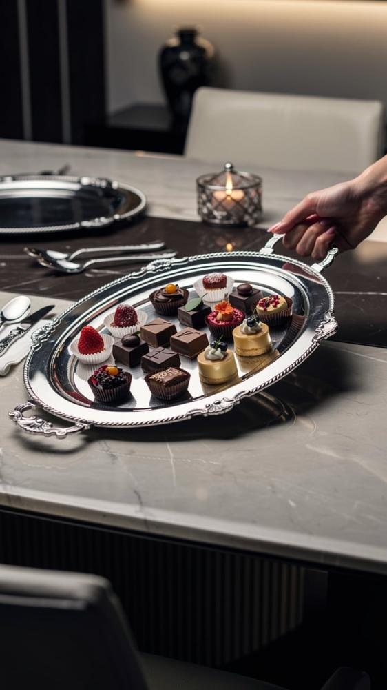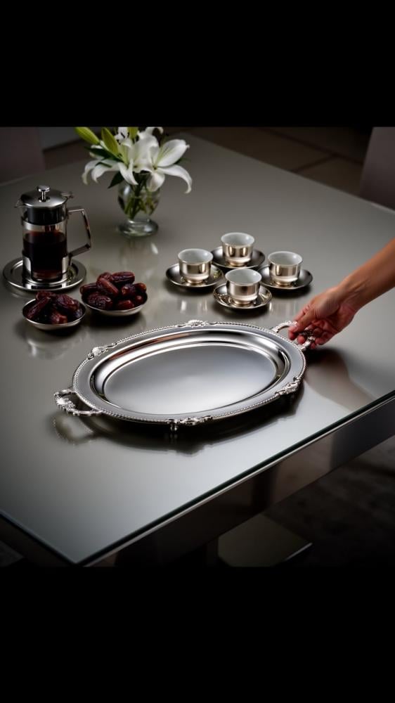 مثالية لتقديم القهوة، الحلويات، التمر، أو حتى للديكور الفخم.