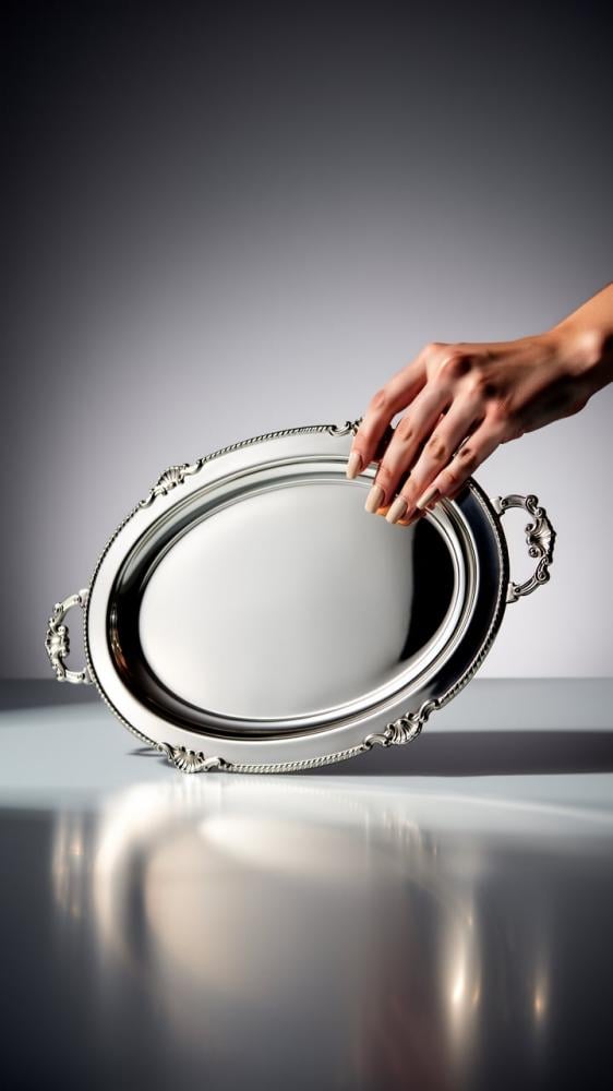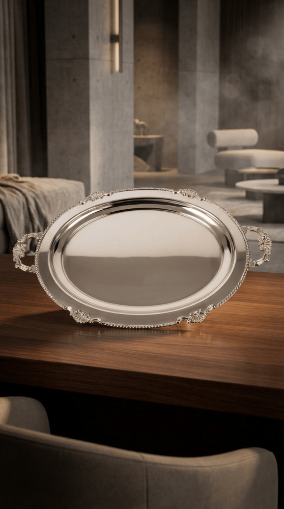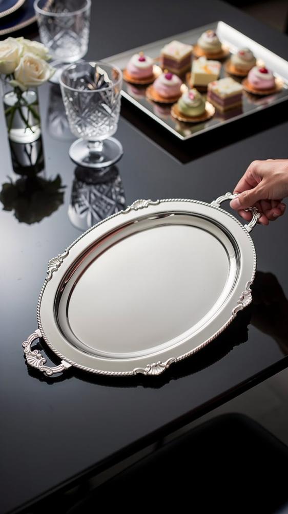 تصميم بيضاوي أنيق مع يد فخمة يعطي إحساس بالرقي ويكمّل طاولة التقديم بذوق يليق بذائقتك.